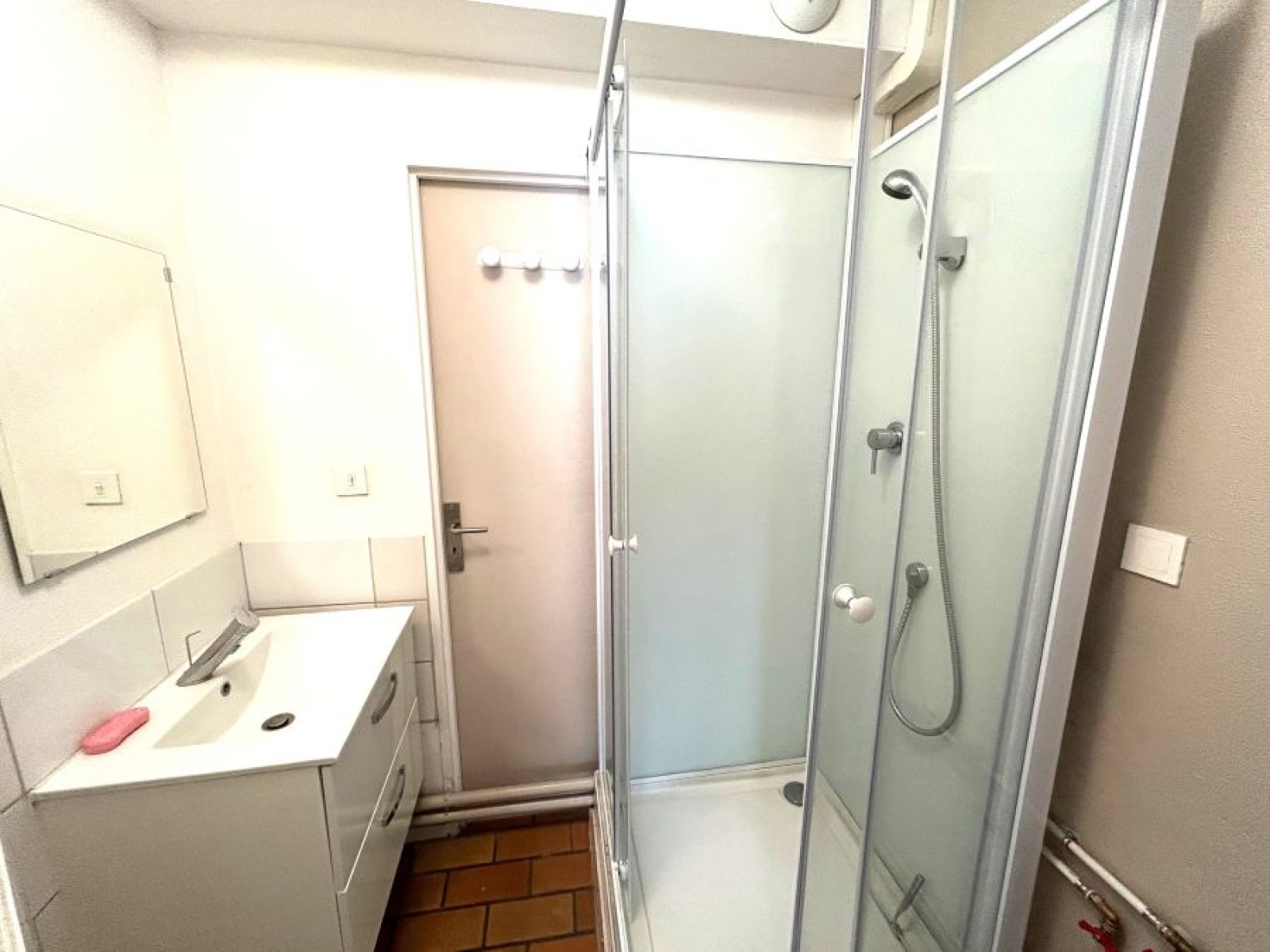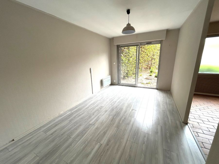 Situé en centre ville, appartement de 50,82m² en rez-de-chaussée dans une résidence sécurisée. Comprenant : grande entrée dégagement, possibilité espace bureau, salle de douche, dégagement, WC avec lave-mains, chambre avec placards de rangement, séjour lumineux de 14m² environ ouvert sur la cuisine équipée de 11m² environ, espace rangement. Chauffage électrique, tout à l'égout, double vitrage alu, volets manuels. Pas d'extérieur. Espace commun de rangement à la cave, 1 place de parking privative. A visiter !!