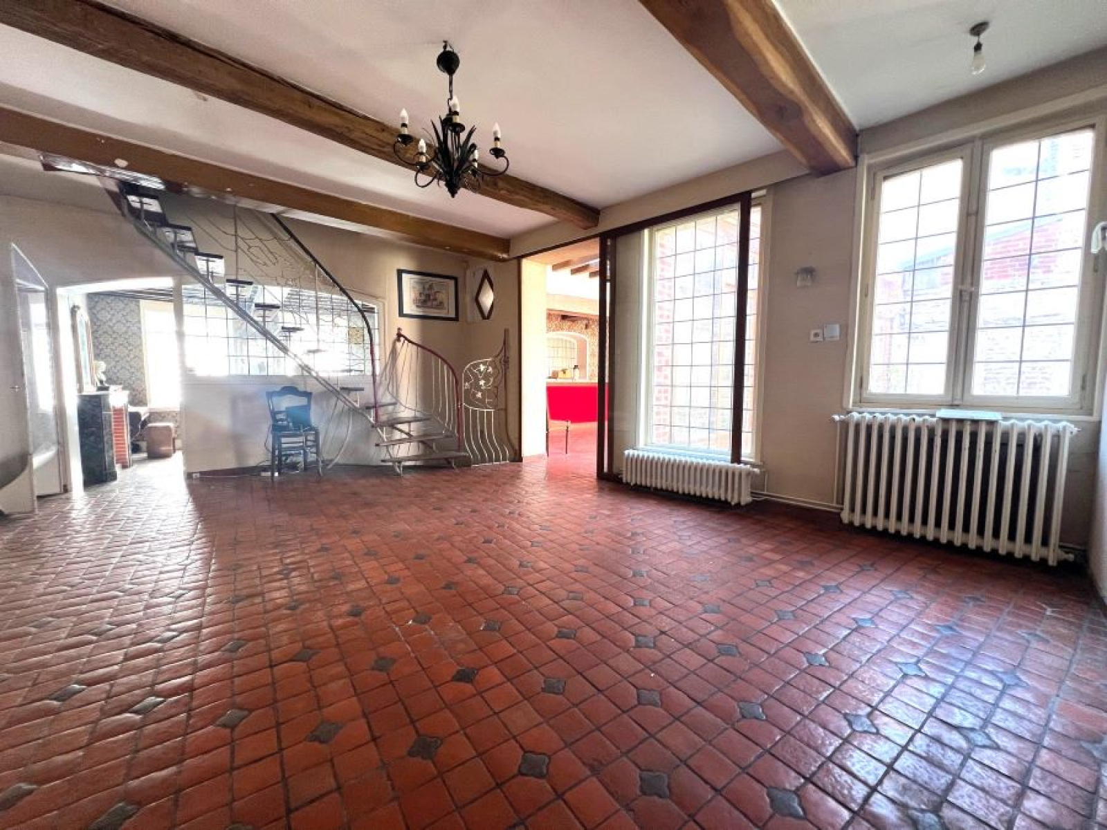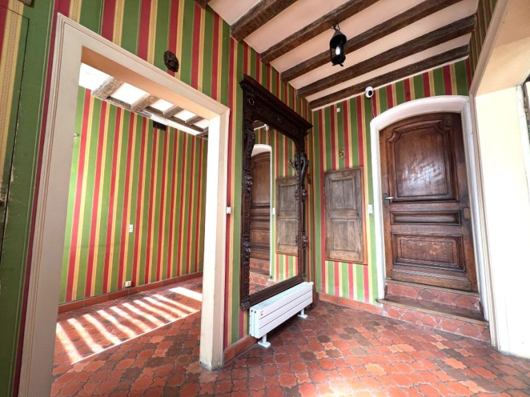 Située en plein centre ville, beaucoup de charme et de cachet pour cette maison de ville mitoyenne des années 30 développant 167m² de superficie habitable et bâtie sur une parcelle cadastrale de 188m². Comprenant : hall d'entrée avec point d'eau, bureau, salon de 22m² environ, salle à manger de plus de 20m², cave saine, second séjour avec cheminée de 22,46m² environ donnant sur le jardin, dégagement, cuisine équipée, WC, salle de douche. Au premier étage : couloir, 4 chambres dont une avec WC et une avec grands placards de rangement, pièce d'eau à rénover pouvant être transformée en salle de bains. Au second : grand grenier aménageable. CCgaz de ville (chaudière de 2022), raccordement au tout à l'égout à prévoir, double vitrage en façade avant et volets motorisés devant. A l'extérieur : jardinet clos et entretenu, porche de 21m² faisant office de garage ouvert avec accès arrière, beau grenier au dessus du porche, espace chaufferie et rangement poubelles. A visiter !!! Beau potentiel !!!