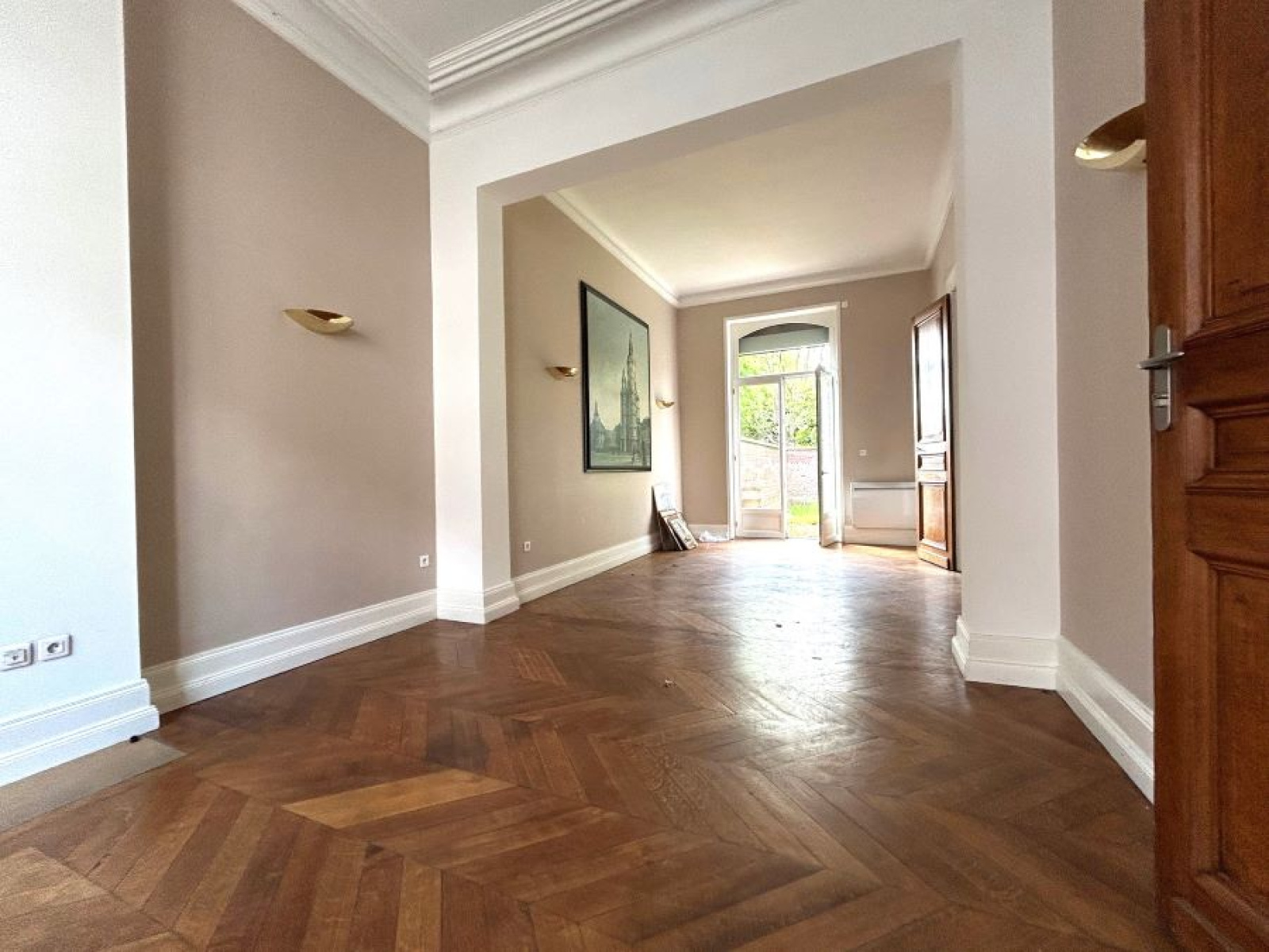 Hyper centre, très bon état pour cette maison bourgeoise individuelle avec garage bâtie sur une parcelle de 380m² environ (à confirmer après passage du géomètre) et développant 230m² de superficie habitable sur 3 niveau. Comprenant : couloir d'entrée, bureau, dégagement, WC, salon/séjour de 33,5m², cuisine aménagée séparée, dégagement, grande cave de 5 pièces + dégagement, garage de 29m². Au premier : palier, 4 chambres avec chacune salle de douche et WC. Au second : 4 chambres avec chacune salle de douche et WC. Chauffage électrique, double vitrage bois, volets électrique en partie, tout à l'égout. A l'extérieur : jardin clos d'un mur exposé OUEST, terrasse. A visiter !!