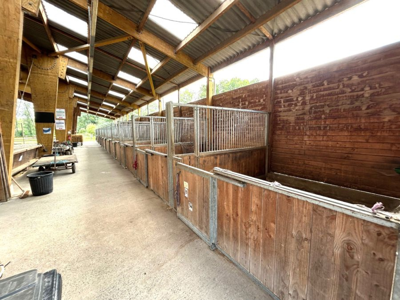 Concernant l'installation équestre : manège couvert semi-ouvert de 24m par 30m, carrière extérieure de 25m par 40m, grand parking, nombreuses prairies, 12 boxes de 3,5m par 3m avec cloisons coulissantes, donnant sur le manège avec abreuvoirs automatiques, espace de stockage couvert semi-ouvert pour le foin et les machines. Forage, fumière, grand parking. A visiter ! Beau potentiel ! Rare sur le secteur !!
