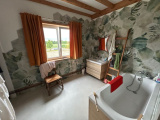 - A l'étage : appartement T4 de 129m² en très bon état avec vue sur le manège et la carrière. Chauffage électrique, double vitrage, micro station d'épuration.