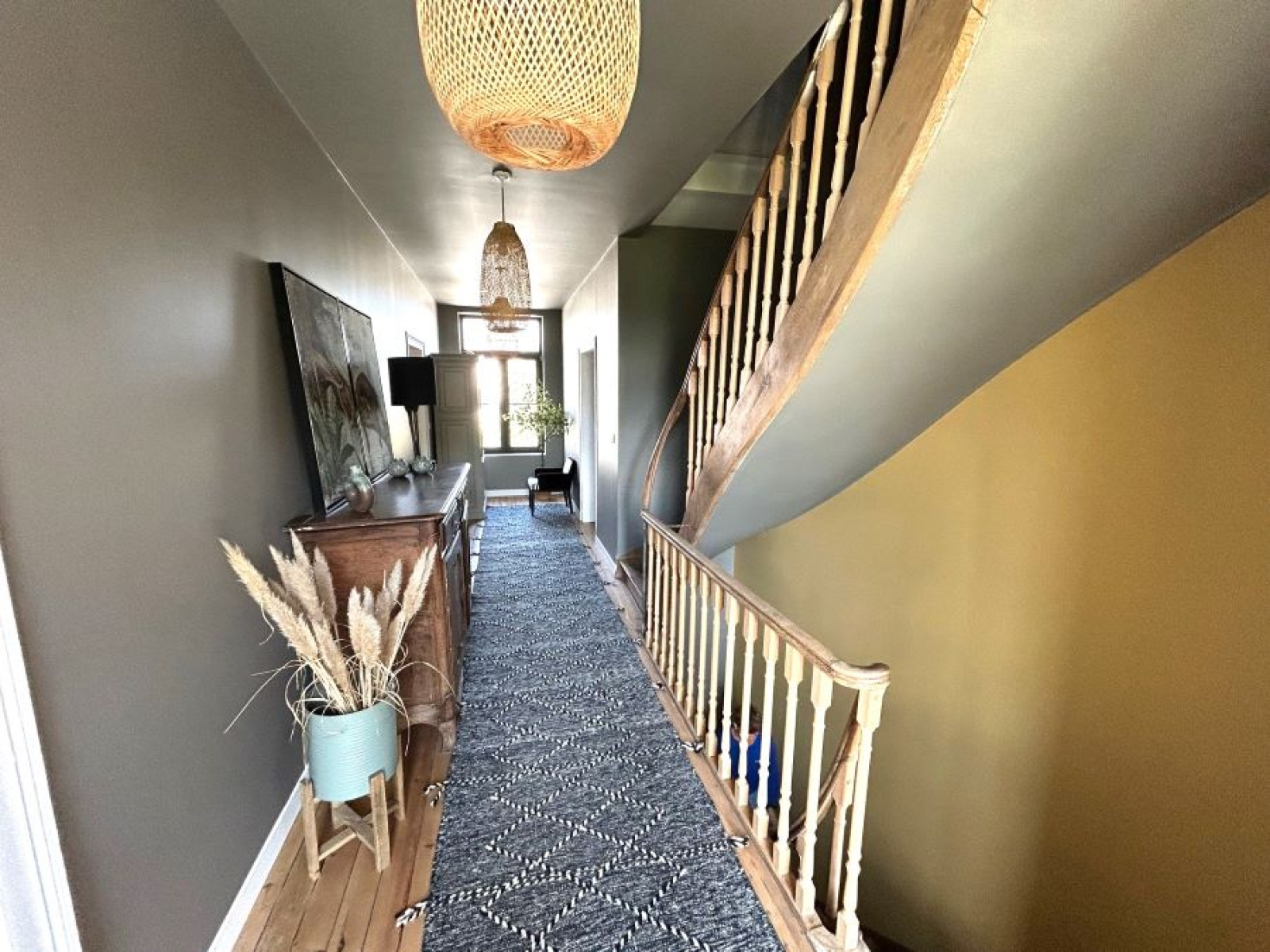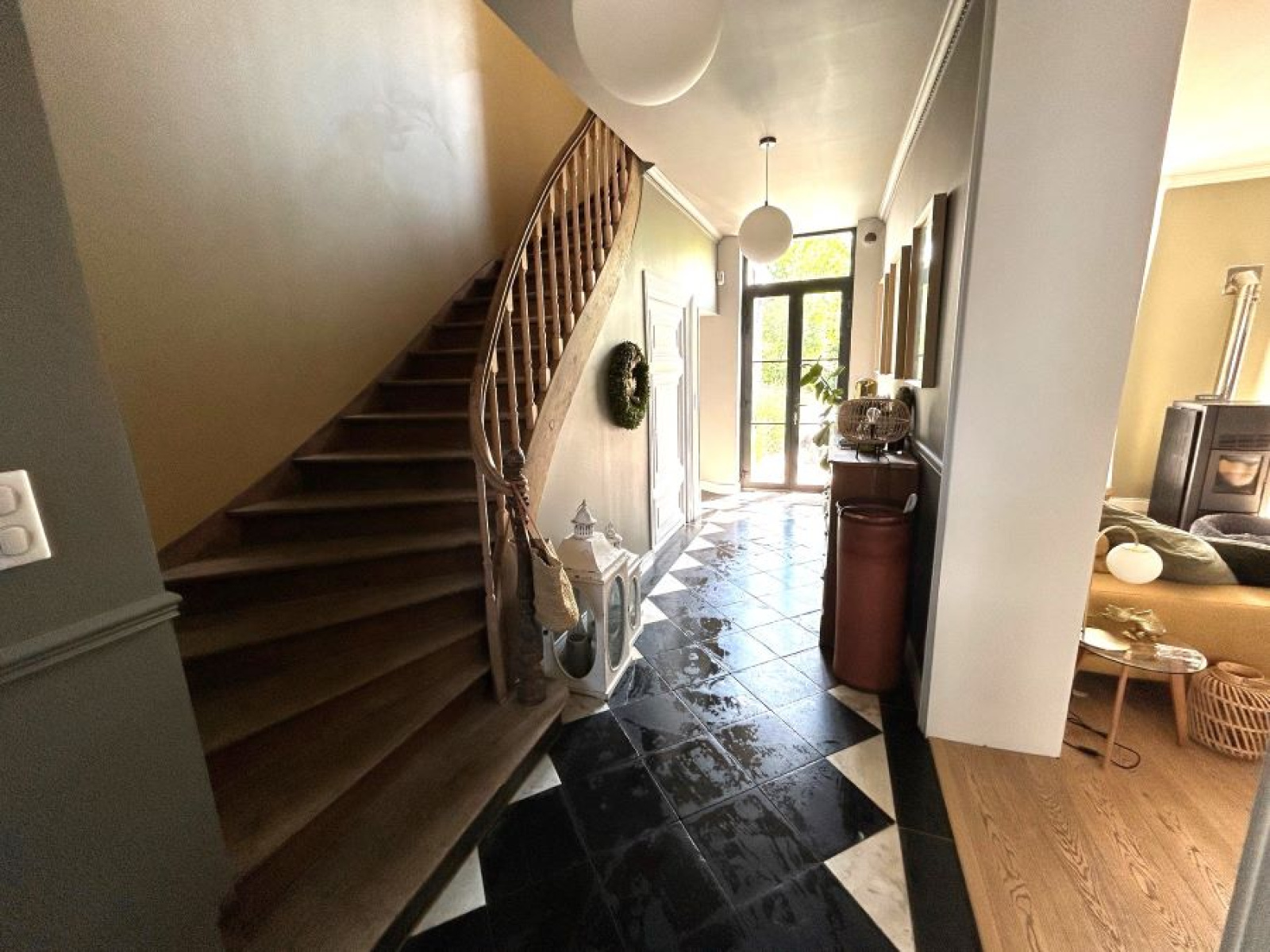 Située proche des accès autoroutiers et des commodités, prestations de qualité et très beaux matériaux pour cette bourgeoise entièrement rénovée en 2017 avec soin. Comprenant : couloir d'entrée, bureau, WC, salon/séjour avec poêle à pellets traversant développant 41,6m², grande cuisine entièrement équipée dinatoire de + de 27m² avec vue sur le jardin, avec second poêle à pellets, cellier attenant. Grande cave de plusieurs pièces saine. Au premier étage : couloir, suite parentale comprenant : chambre, dressing aménagé, salle de bains avec baignoire ilôt, vasque, douche et WC. Salle de sport avec placards ou chambre, bureau, buanderie avec rangements. Au second : espace enfants : grande salle de jeu avec espace détente, (possibilité WC supplémentaire) deux chambres avec chacune leur propre salle de douche et leurs rangements, espace en mezzanine. Chauffage électrique + pellets, double vitrage alu (verre stadip), tout à l'égout. A l'extérieur : plusieurs terrasses, piscine chauffée de 6m par 3m et 1,5m de profondeur (coque/ piscine au chlore), pool/house servant aussi d'atelier, cour pouvant accueillir 3 véhicules, fermée par un portail motorisé, carport. Espace détente : vasque, douche et sauna. Jardin arboré et clos avec quelques fruitiers, exposition SUD !!! A visiter !!! DPE en cours de réactualisation suite à travaux.