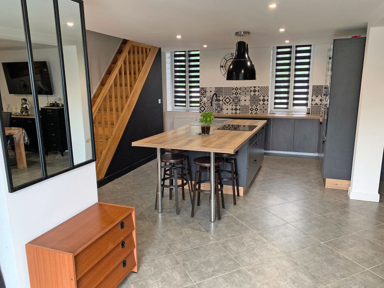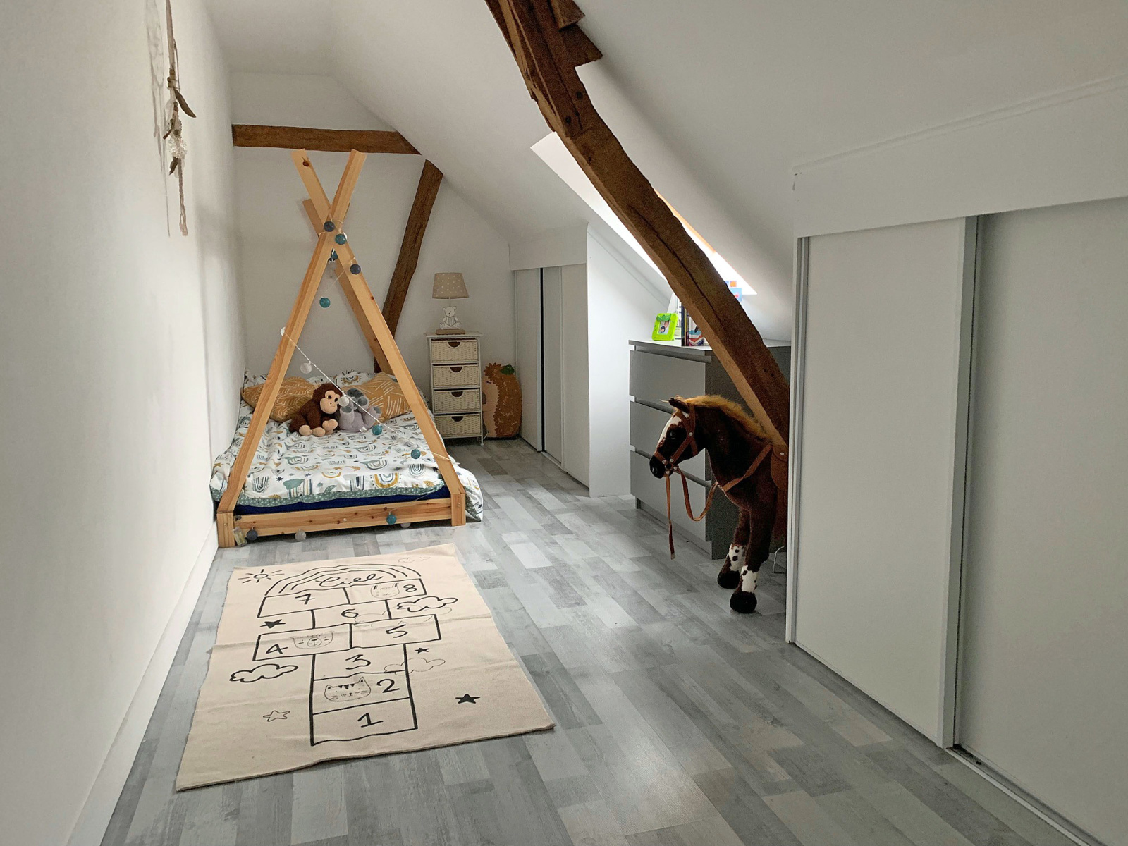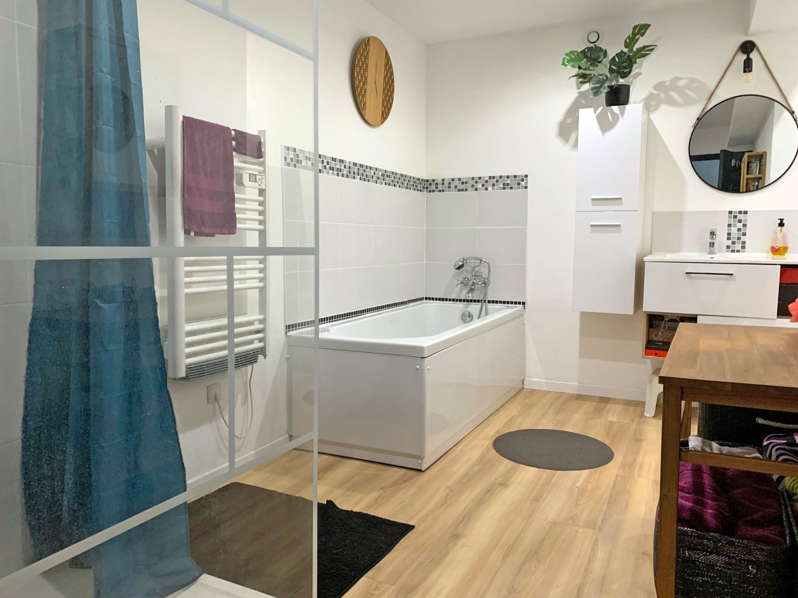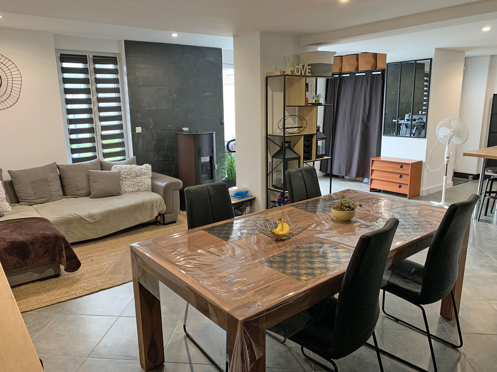SItuée dans un secteur prisé proche des commodités et des axes autoroutiers, maison semi-individuelle entièrement rénovée, aucun travaux à prévoir ! Comprenant : sas d'entrée, grande pièce de vie ouverte de + de 46m² comprenant cuisine équipée avec ilôt central coin repas (cuisinella) en parfait état, espace salon, espace séjour, placards de rangements et rangements supplémentaires sous escalier. Cellier/buanderie, wc. Au premier : palier, grande salle de bains avec wc, vasque, baignoire et douche. Grande chambre de 22m² environ avec grenier isolé de rangement. Au second : dégagement possibilité espace bureau, 2 chambres mansardées avec placards de rangement aménagés dans les sous-pentes. Chauffage électrique + poêle à pellets dans le salon, tout à l'égout, double vitrage PVC avec volets roulants motorisés. Superficie habitable de 131m² utiles et 110 environ loi carrez. A l'extérieur : grand porche couvert servant de car-port deux voitures avec grenier de stockage au dessus, terrasse exposée SUD, jardin clos. Le tout bâti sur 329m² de terrain. A visiter !!!