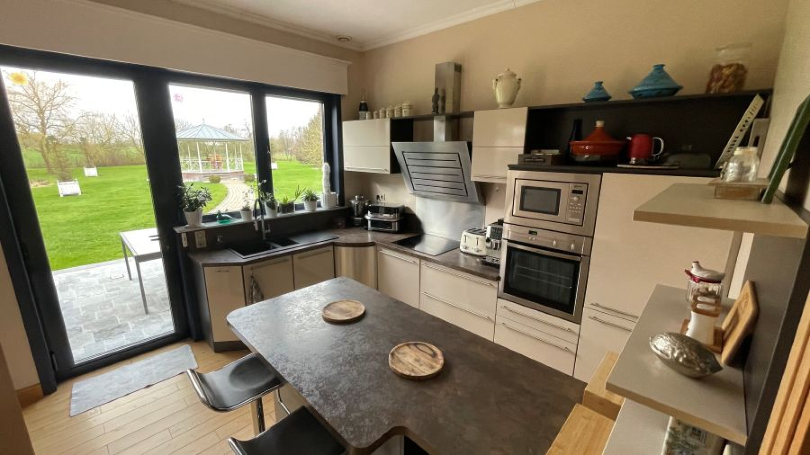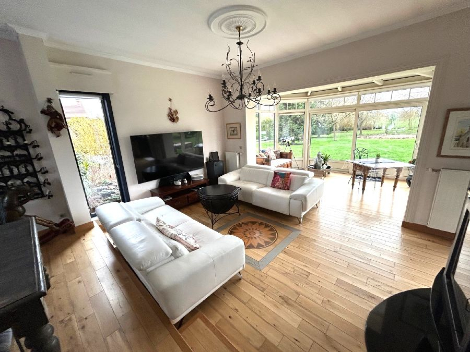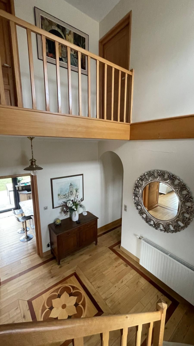 Situé dans une rue calme en belle campagne amandinoise, excellent état et prestations de qualité pour ce pavillon individuel de 2010 bâti sur une parcelle de 3902m² et exposée SUD/OUEST et développant 215m² loi carrez ! Comprenant : hall d'entrée, dégagement, rangements, lave-mains et WC, belle pièce de vie de 49m² environ dont véranda en bow Windows et insert à bois. Cuisine équipée séparée coin repas, 2 chambres en bas dont une avec grands placards aménagées, salle de douche avec douche italienne vasque et WC. Grande buanderie, garage de 23m². A l'étage ; dégagement, chambre spacieuse, salle de bains avec baignoire, vasque et WC. Grande chambre supplémentaire avec espace billard. CCgaz de ville, fibre optique, tout à l'égout, double vitrage avec volets motorisés SOMFY programmables et centralisables, belles hauteurs sous plafonds, 2 systèmes d'alarme, aspiration centralisée, parquet massif en chêne sur 200m², citerne à eau de 10 000L branchée sur 2 WC et lave-linge, 2 récupérateurs d'eau. A l'extérieur : portail motorisé, grand parking macadamisé, second garage indépendant de 20m² transformé en pièce Jaccuzzi avec baie vitrée donnant sur le jardin. Robot tondeuse Husqvarna 450X, terrain paysagé, arboré et clos (arbres fruitiers). Plus de 100m² de terrasse en pierres bleues, abris bûche, éclairages extérieurs, abris à outils. Kiosque à musique de 25m² avec table 12 personnes et 6 fauteuils (éclairage et prises de courant) ! A visiter !!