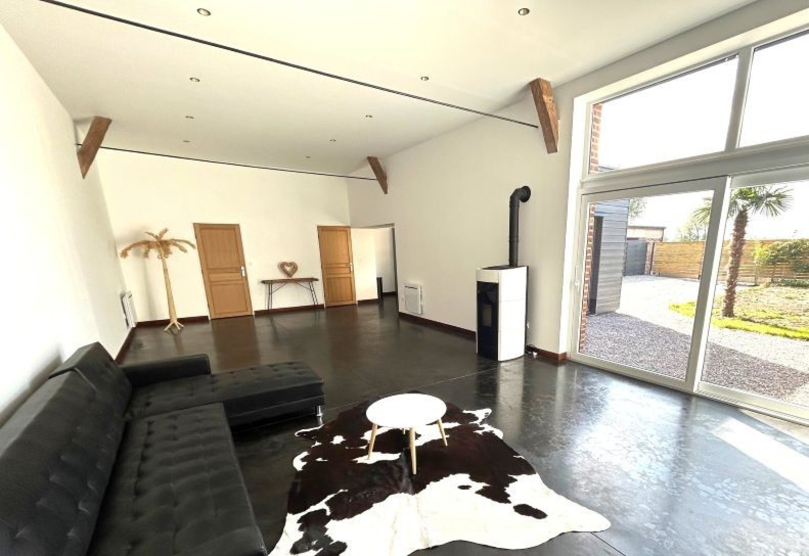 Dans le beau village prisé de LECELLES (59226) à 21mn d'Orchies (19,7km) à 8mn de St Amand-les-Eaux (5,1km) à 25 mn de Valenciennes (21km) 37mn de Lille (42,1km) et 25mn de tournai (16,3km). Située en retrait de rue, dans un secteur prisé, ancienne grange entièrement rénovée récemment de plain pied, développant 160m² de superficie habitable et bâtie sur une parcelle de 526m² exposée plein SUD. Comprenant : entrée ouverte, grande pièce de vie de 50m² avec hauteur sous plafonds à plus de 3m et poêle à pellets, elle même ouverte sur la cuisine équipée coin repas de 25m² environ. WC avec espace lave-mains/rangements, cellier/buanderie. Bureau ou dressing de plus de 9m², couloir, salle de bains avec baignoire, vasque et WC. 2 chambres de 11,8 et 12,23m². Suite parentale de 26,5m² donnant sur la terrasse, comprenant : espace chambre, grande douche à l'italienne, meuble vasque, espace dressing. Chauffage électrique + pellets, double vitrage PVC et alu, tout à l'égout, fibre optique. A l'extérieur : jardin clos et arboré, parking 3 voitures, portail motorisé, espace pelouse, première terrasse en graviers, seconde terrasse. A visiter !! On pose ses meubles, aucun travaux à prévoir ! Rare sur le secteur !!