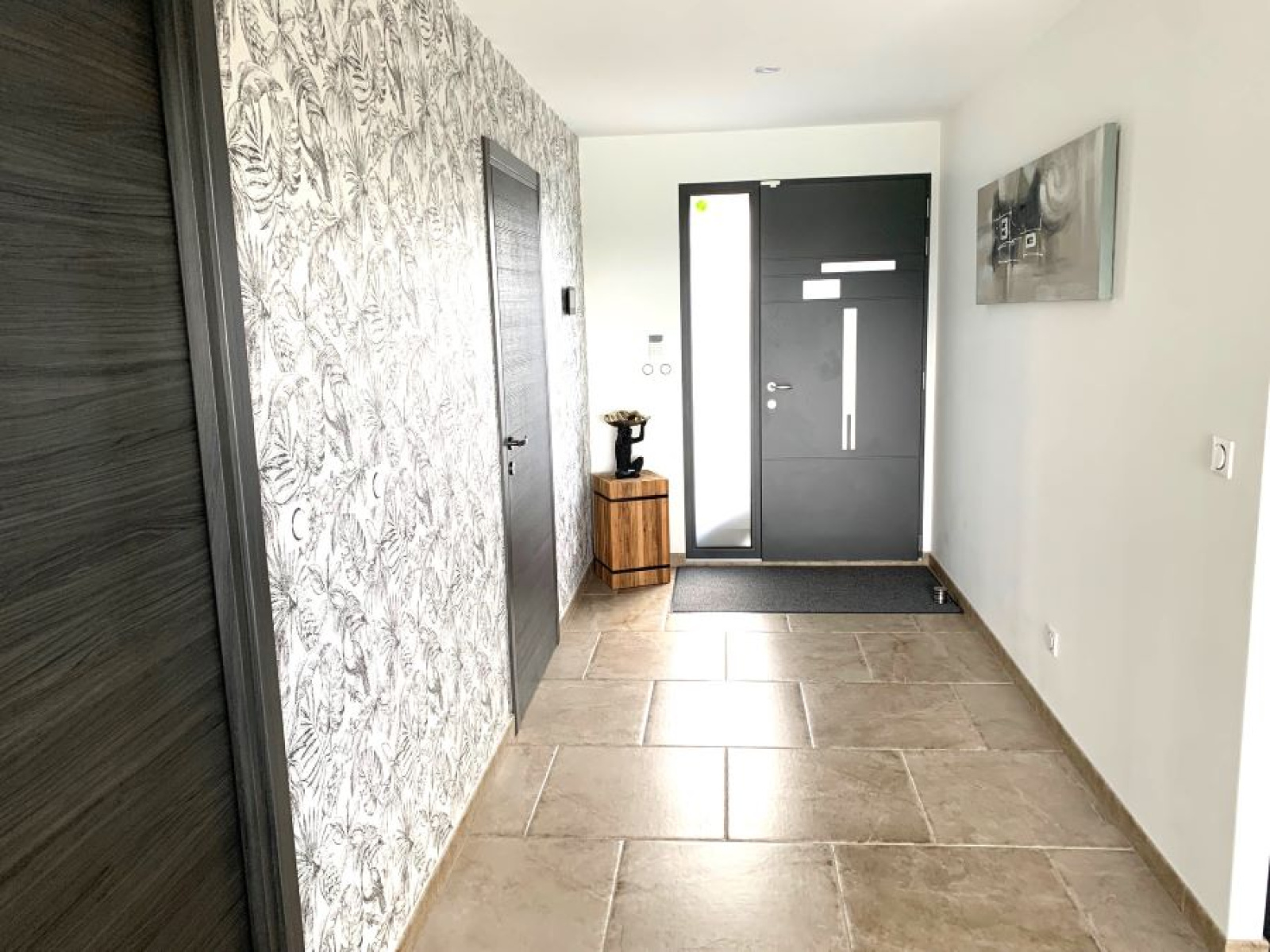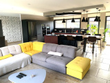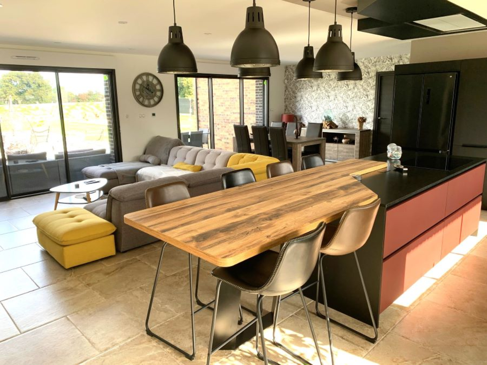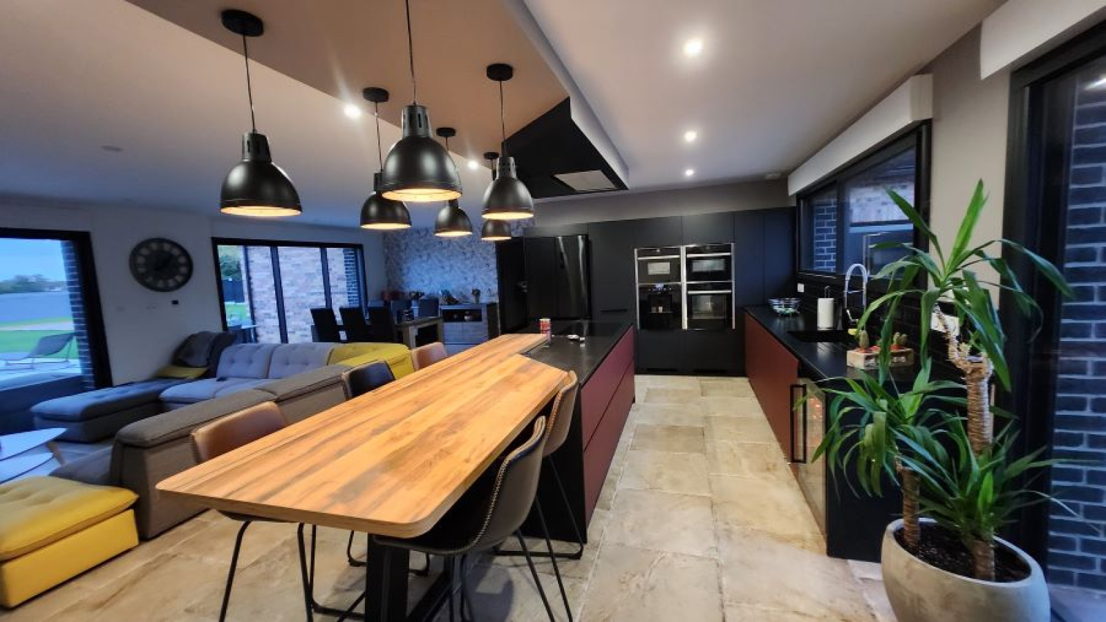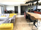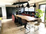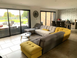 un hall d'entrée semi ouvert sur la pièce de vie pour une superficie totale de 67m² : cuisine entièrement équipée avec ilôt central moderne de marque SCHMIDTT, avec 3 fours, machine à café, cave à vin, électroménager de qualité (neff ...) hotte intégrée au plafond etc.. donnant sur le salon/séjour baigné de lumière avec grandes baies vitrées donnant sur la terrasse et la piscine. un grand cellier/buanderie de 15m² un garage double de 40m² avec porte large motorisée un espace suite parentale séparé des autres chambres comprenant : dégagement, dressing aménagé, salle de bains avec baignoire, vasque, douche et WC suspendus (Geberit), espace chambre avec baie donnant sur la terrasse de l'autre côté de la maison : WC suspendus (Geberit) séparés avec lave-mains, salle de bains avec baignoire, vasque et douche, 3 chambres spacieuses de 14 /14 et 16m² chacune avec placards aménagés.Concernant les équipements de la maison : cette dernière dispose de domotique pour les volets et les lumières extérieures, centralisation pour les volets, chauffage par le sol par pompe à chaleur (DAIKIN), adoucisseur d'eau, fibre, cuve de récupération des eaux de pluie de 10 000L alimentant les WC et les machines, tout à l'égout, double vitrage aluminium.