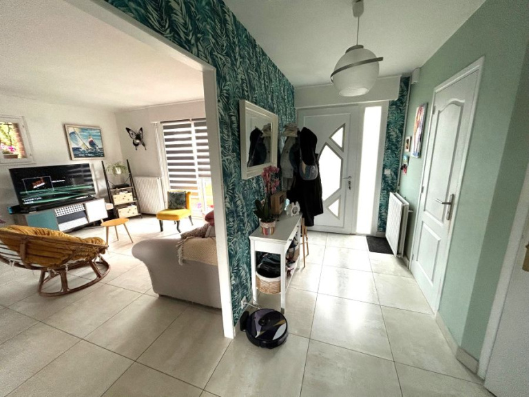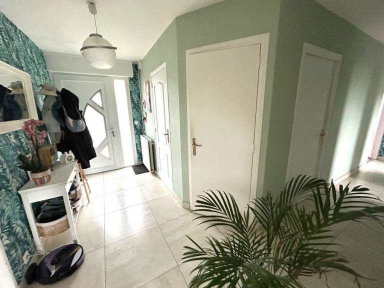 Situé en campagne amandinoise, très bon état pour ce plain pied individuel des années 80 rénové, bâti sur une parcelle de 947m² et développant 98,63m² habitables. Comprenant : hall d'entrée, WC avec lave-mains, placards de rangement, salon/séjour en L ouvert sur la cuisine équipée coin repas et comprenant poêle à bois. Cellier/buanderie, couloir, salle de bains avec vasque, baignoire et douche, 3 chambres. Ccgaz de ville, tout à l'égout en partie (raccordement à finaliser pour les WC), fibre, double vitrage PVC, volets roulants manuels et électriques. A l'extérieur : terrasse sur le côté, garage indépendant de 20m², jardin arboré. A visiter !!