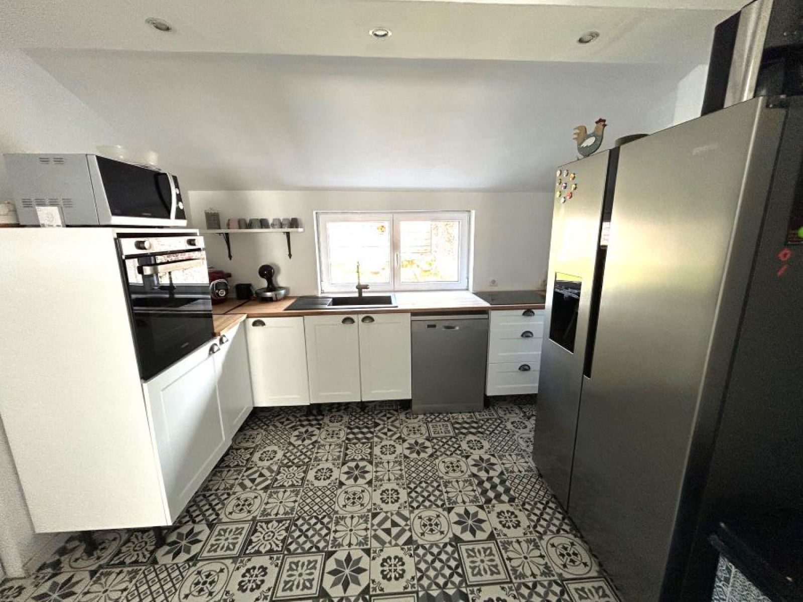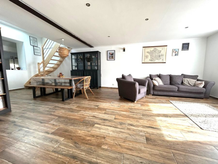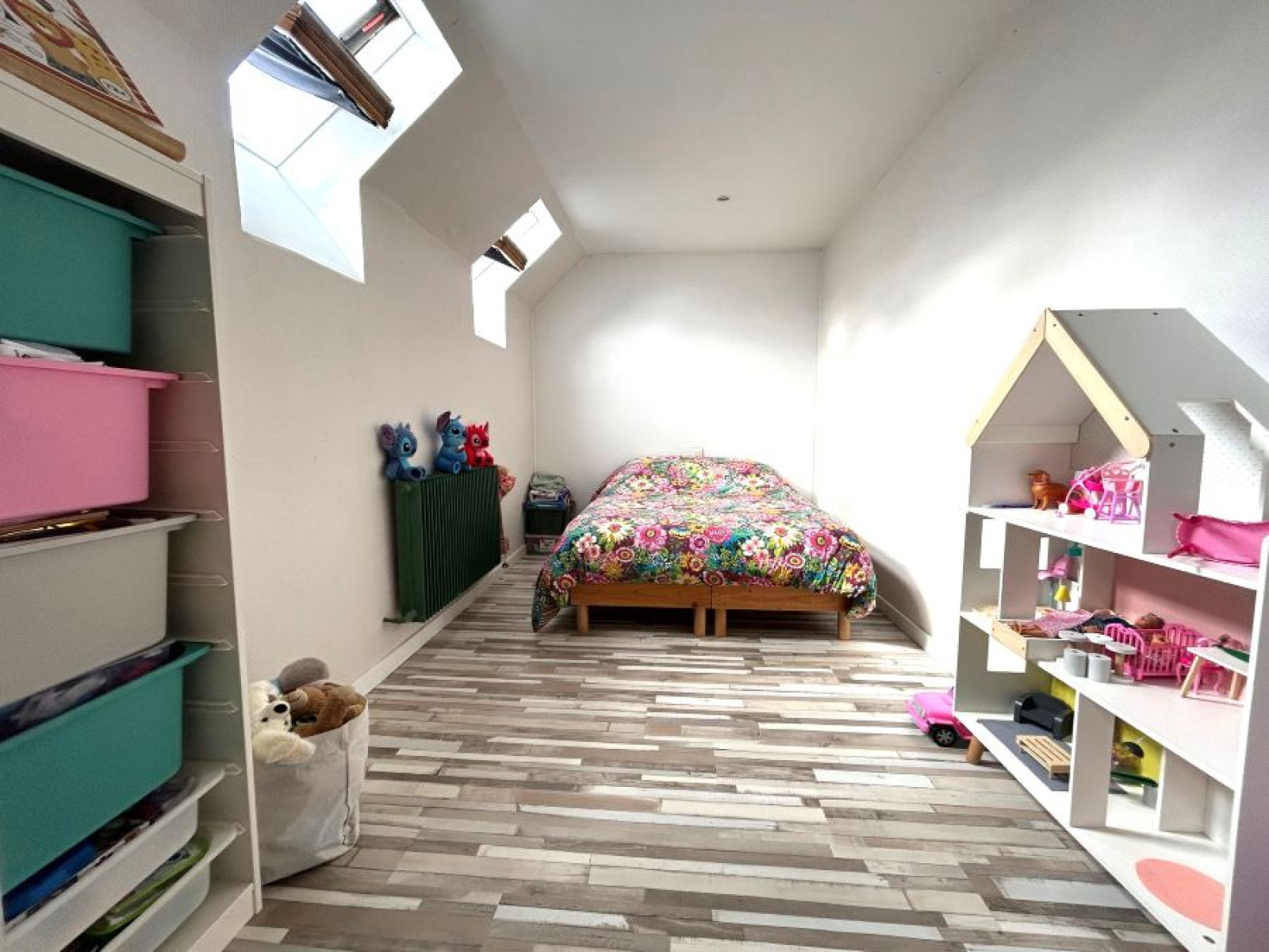 Située en campagne amandinoise, maison semi individuelle de 127m² bâtie sur une parcelle de 1963m². Comprenant : entrée avec dégagement et rangements, buanderie, WC, salon séjour avec partie cathédrale pour une superficie de 38m² environ, cuisine équipée semi ouverte de 9,68m², salle de bains, bureau ou chambre d'appoint. A l'étage : palier, 3 chambres dont une avec espace dressing possible et une avec placards de rangement. CCgaz de ville, tout à l'égout, double vitrage PVC. A l'extérieur : atelier, chalet de jardin, carport, jardin avec vue sur champs, dépendance/Abris de jardin.