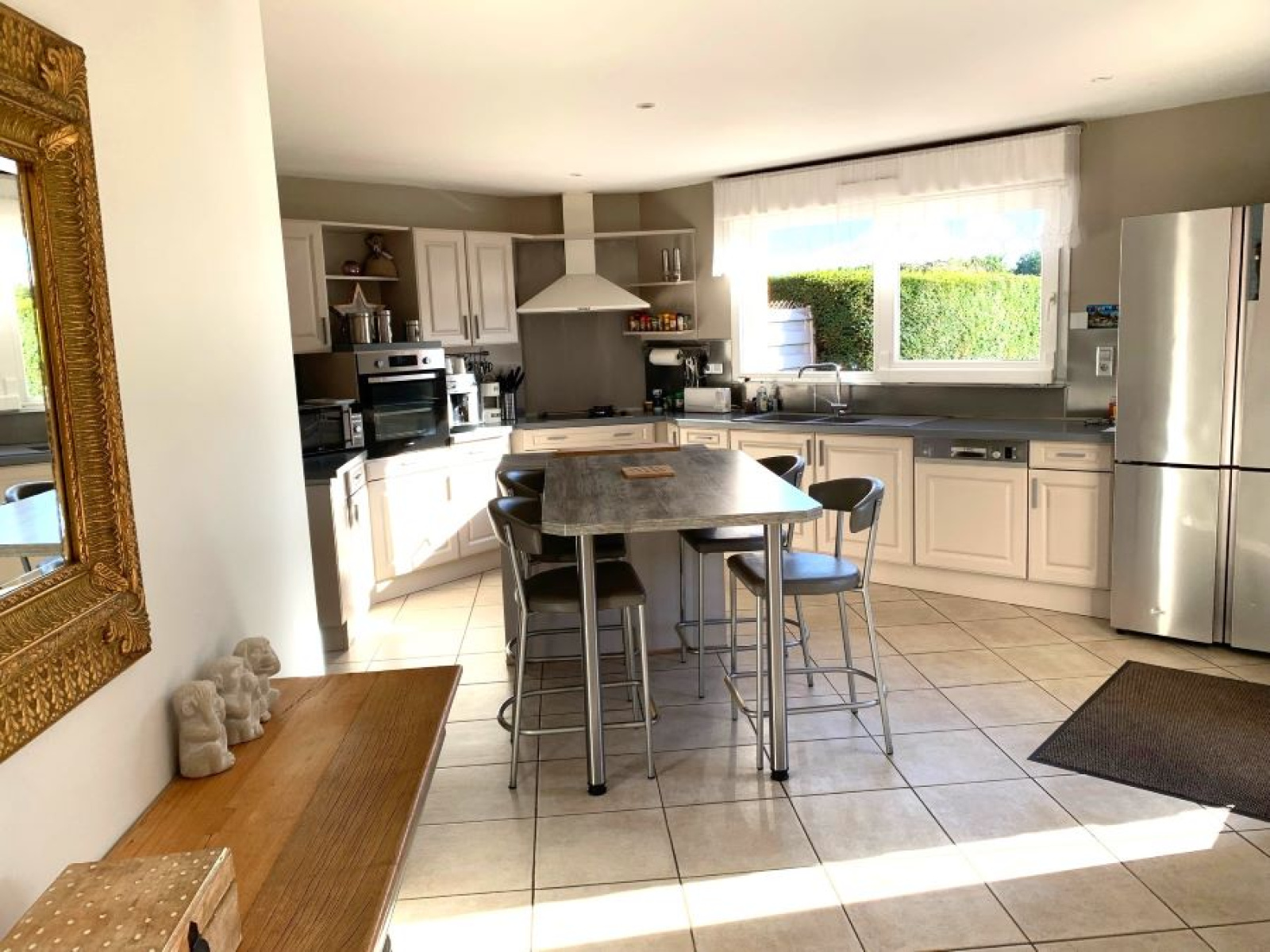Situé en belle campagne amandinoise, dans une rue calme avec une vue sur la nature, excellent état pour ce pavillon individuel de 2002 de 160m² utiles et 145m² carrez bâti sur une parcelle de 3020m². Comprenant : hall d'entrée avec rangement, dégagement, WC avec lave-mains, bureau ou chambre en bas (11m²), salon/séjour avec poêle à bois (GODIN) ouvert sur la cuisine équipée coin repas (ilôt central) pour une superficie totale de 60m, pièce lumineuse, cellier. A l'étage : palier, 2 chambres dont une avec placards, WC, salle de bains avec baignoire, vasque et douche et espace machine. Suite paentale comprenant : espace nuit avec rangements et salle de bains privative avec baignoire, vasque et douche. CCgaz de ville, tout à l'égout, VMC, fibre, double vitrage, volets roulants motorisés avec centralisation. A l'extérieur : portail motorisé, parking plusieurs véhicules, garage indépendant de 29m² avec eau et électricité, terrasse exposé EST, store ban, jardin arboré et clos avec espace potager et abris bois. Partie prairie non cloturée. A visiter !!!