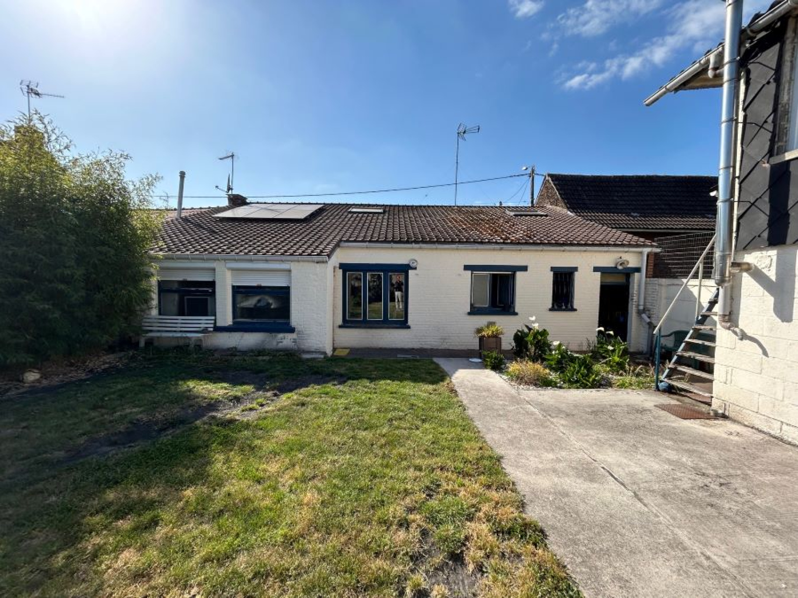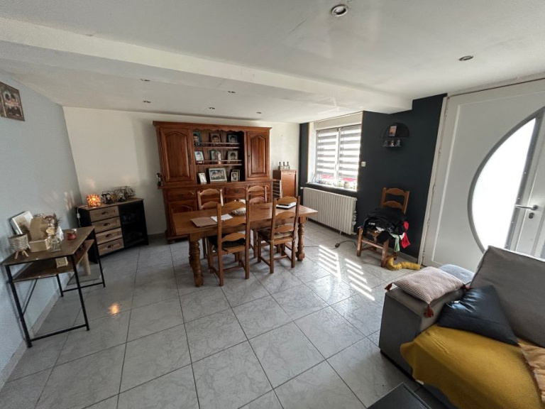 Située proche des accès autoroutiers, maison mitoyenne de plain-pied développant 97,6m² de superficie habitable et bâtie sur une parcelle de 346m². Comprenant : pièce de vie de 27m², cuisine séparée coin repas de 21,47m², 2 chambres de 17 et 12m², espace buanderie, WC, salle de bains avec coin machine, couloir, cellier, garage de 19m². Grenier accessible par le garage, tout à l'égout, ccgaz de ville, panneaux solaires. A l'extérieur ; terrasse, jardin clos exposé SUD/EST, coin potager. Dépendance atelier de 14m² avec chambre au dessus séparée de la maison (accès par escalier extérieur) de 13,4m². A visiter !! Travaux à prévoir .