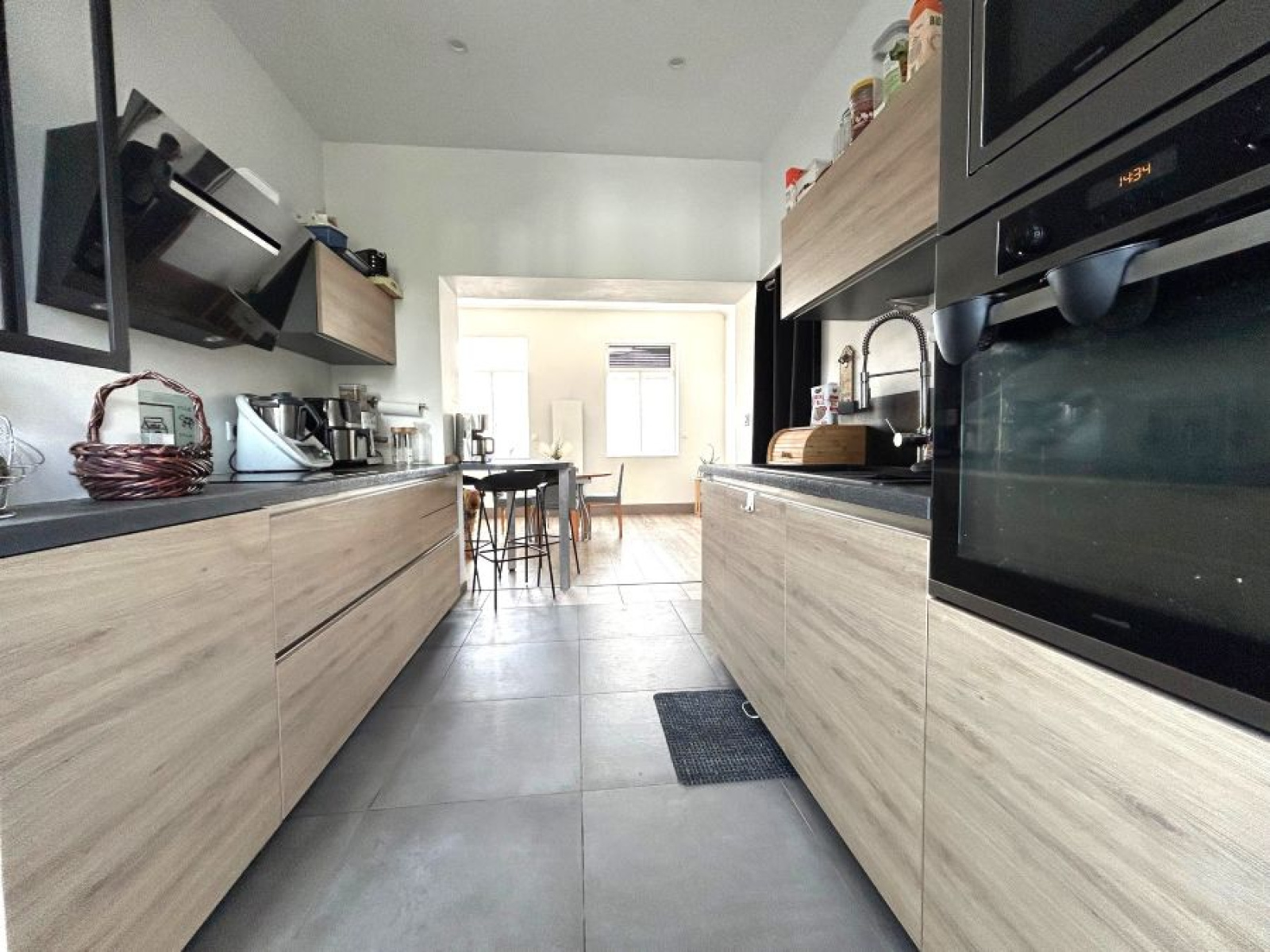 Belles prestations, charme et cachet pour cette maison de style bourgeoise semi individuelle développant 184m² carrez et environ 207m² utiles, bâtie sur une parcelle de 712m². Double distribution : couloir d'entrée traversant avec carrelage d'époque, à gauche, salon/séjour avec plafonds moulurés, cheminée et hauteur pour une superficie de 37m² environ, à droite : cuisine équipée et coin repas avec plafonds moulurés également, cheminée marbre et placards à l'ancienne, pour une superficie totale de 31m² environ, dégagement, cave, second dégagement avec lave-mains, WC. Au premier : palier, WC, chambre avec salle de douche, seconde chambre avec balcon, dressing et salle de douche, suite parentale avec chambre cathédrale avec charpente apparente, salle de bains attenante avec baignoire, vasque, douche et dressing aménagé. Au second : une chambre aménagée dans les combles. Chauffage électrique, tout à l'égout, double vitrage PVC, volets roulants motorisés, fibre optique, VMC simple flux. A l'extérieur : bel espace parking/jardin sur l'avant de la maison, grilles travaillées, dépendance sur la gauche de la maison: pièce de stockage, buanderie et espace combles. Sur l'arrière : jardin clos de murs à aménager complétement de 220m² environ. A visiter !!
